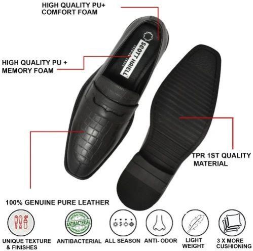 Mens SE1004 Black Leather Loafer Shoes